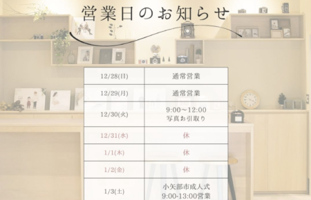 年末は12月29日(木)まで、年始は1月3日(火)より
